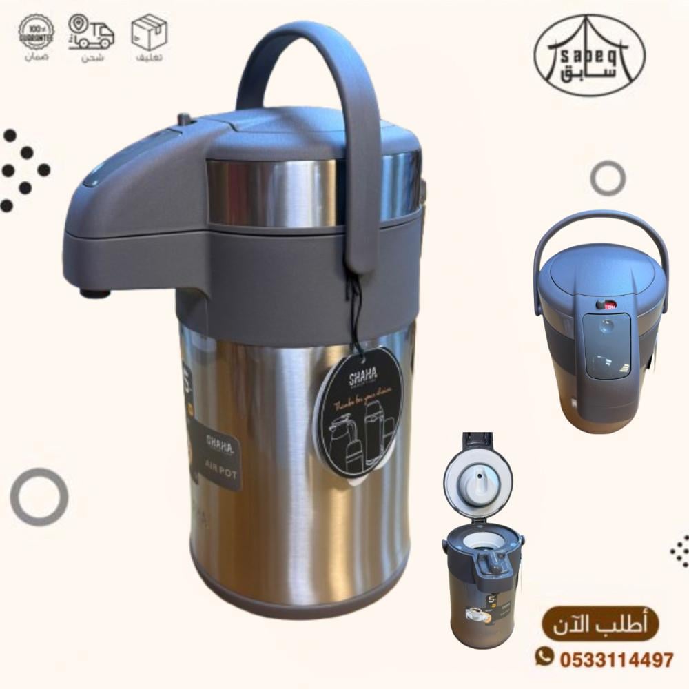 ترمس شاها 3 لتر ضغاط رصاصي لمبع